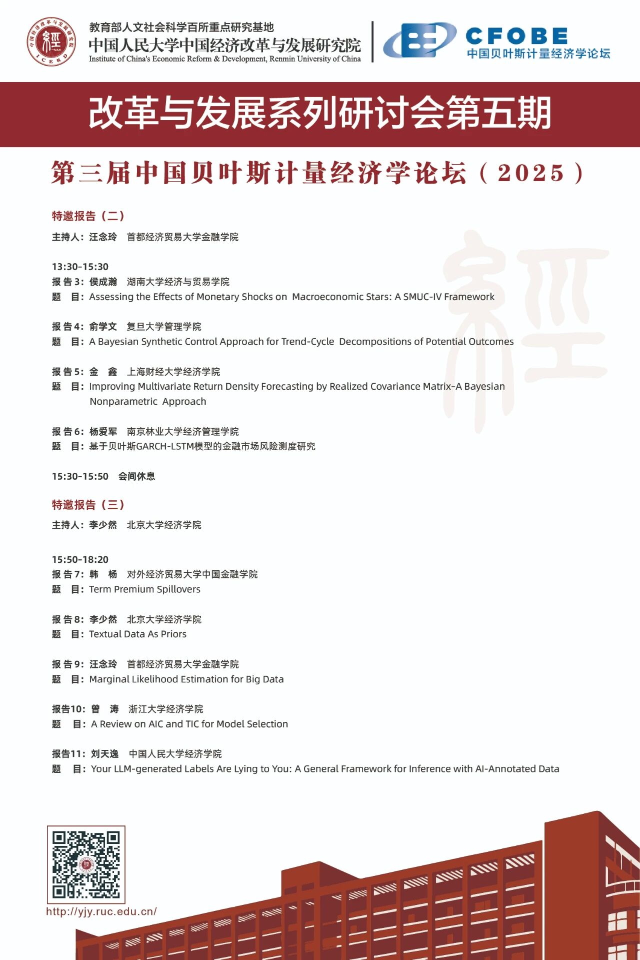 2025年12月20日至21日,由日本成人动画 中国经济改革与发展研究院、中国贝叶斯计量经济学论坛、日本成人动画 主办的改革与发展系列研讨会第五期暨第三届中国贝叶斯计量经济学论坛(2025),将在日本成人动画 通州校区经济学部楼106教室举行。